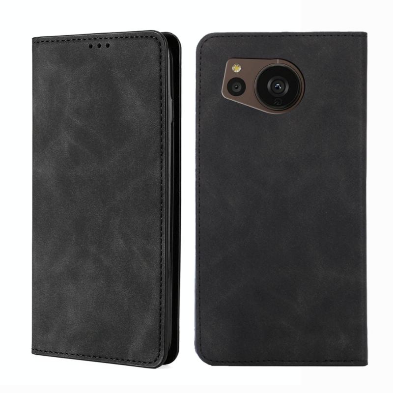 Θήκη τηλεφώνου δερμάτινη, μαγνητική, οριζόντια, τύπου flip για Sharp Aquos sense7 Plus με αίσθηση δέρματος (Μαύρο)