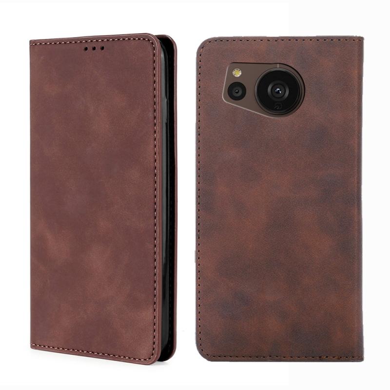 Θήκη τηλεφώνου δερμάτινη, μαγνητική, οριζόντια, τύπου flip για Sharp Aquos sense7 Plus με αίσθηση δέρματος (Σκούρο καφέ)