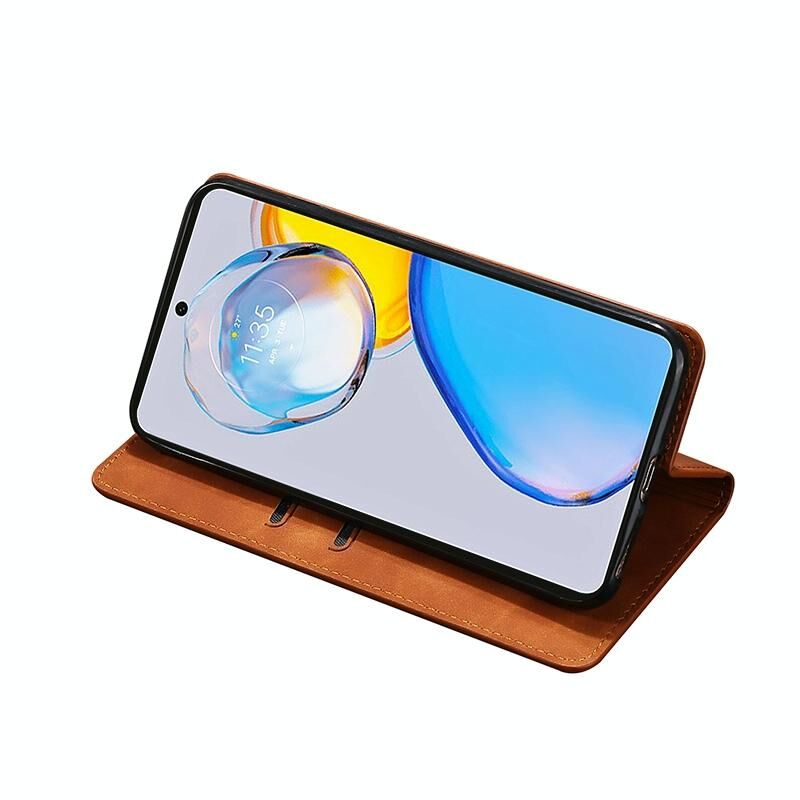 Θήκη τηλεφώνου δερμάτινη, μαγνητική, οριζόντια, τύπου flip για Sharp Aquos sense7 Plus με αίσθηση δέρματος (Ανοιχτό καφέ)