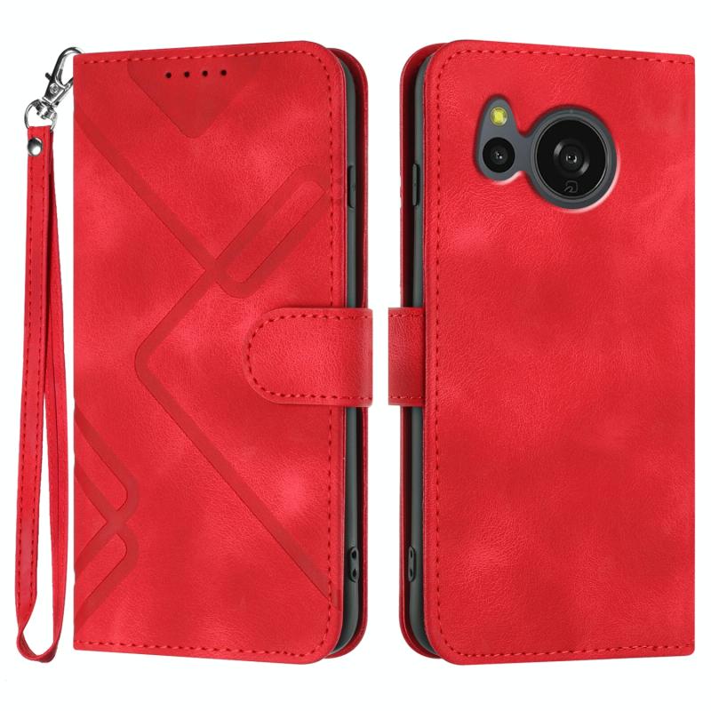 For Sharp Aquos sense7/SH-53C/SHG10 Line Pattern Skin Feel Leather Phone Case(Red)