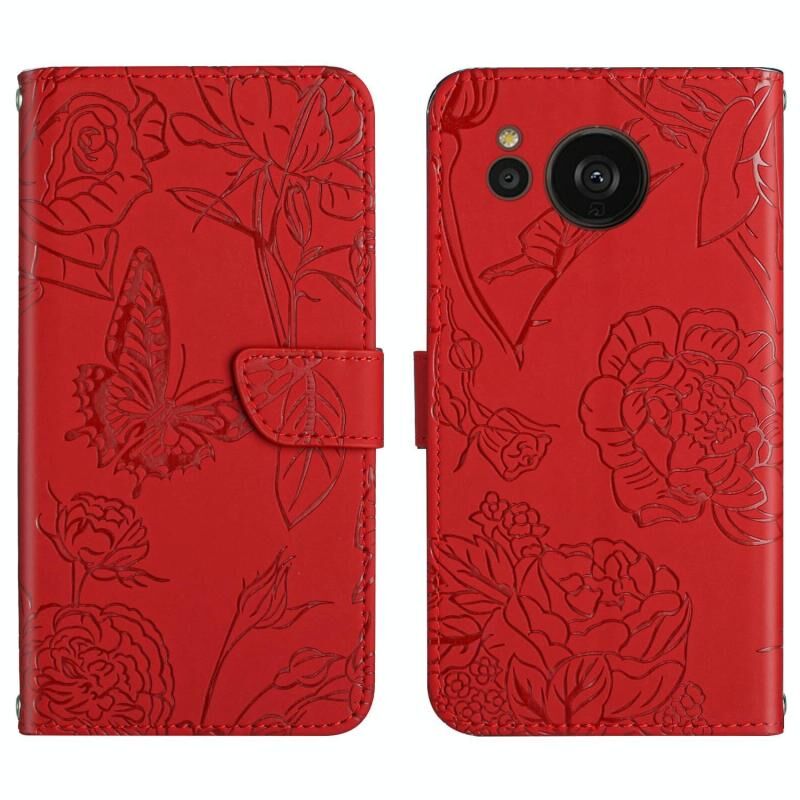 Για το Sharp Aquos Sense7 SH-V48 HT03 δέρμα αίσθηση πεταλούδα ανάγλυφο Flip δέρμα τηλέφωνο υπόθεση (Κόκκινο)