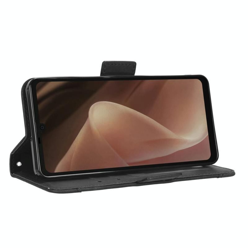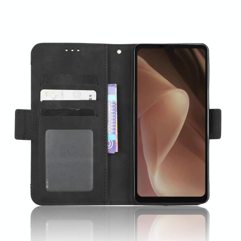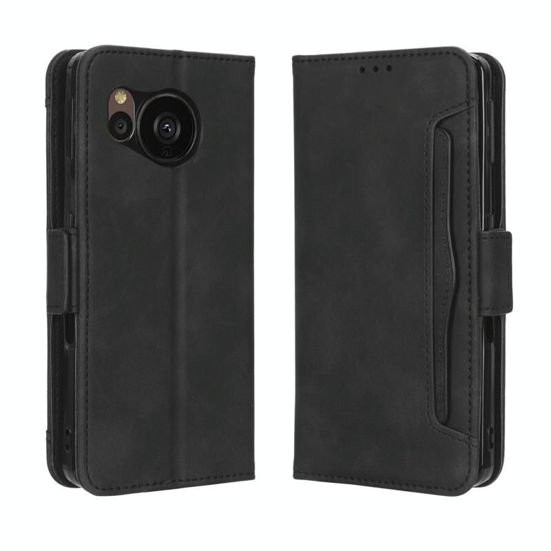 Για Sharp Aquos Sense7 δέρμα αίσθηση μοσχάρι υφή κάρτα υποδοχές δερμάτινη θήκη τηλεφώνου (μαύρο)