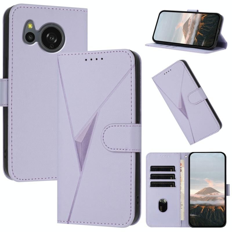 Για Sharp Aquos Sense7 Τρίγωνο μοτίβο αγκράφα κούμπωμα δερμάτινη θήκη τηλεφώνου (Light Purple)