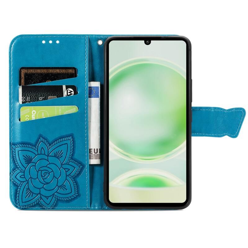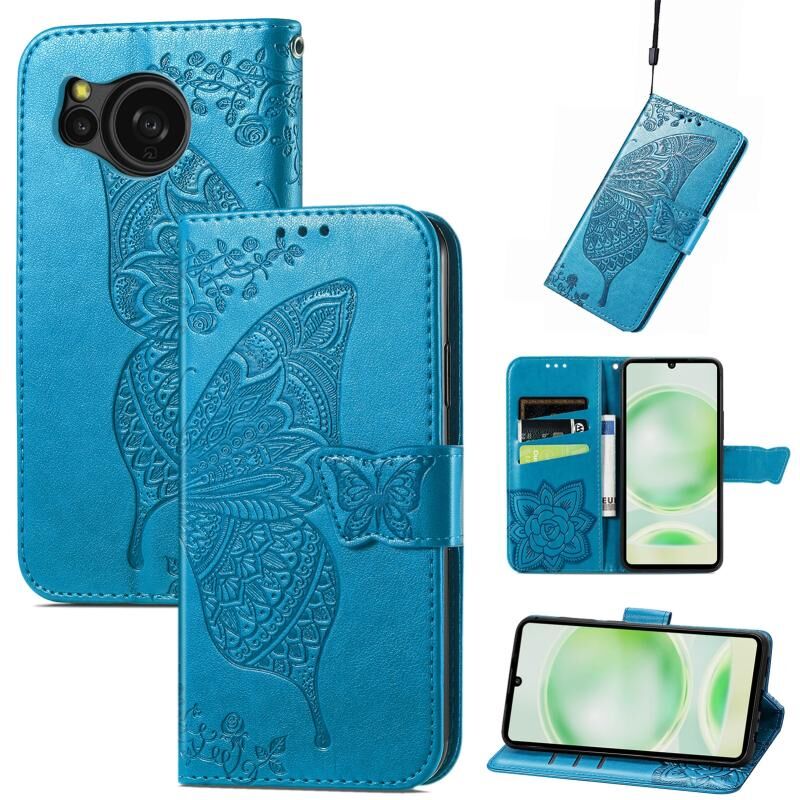 Θήκη τηλεφώνου από δέρμα με ανάγλυφο σχέδιο λουλουδιών Butterfly Love για Sharp Aquos Sense8 (Μπλε)