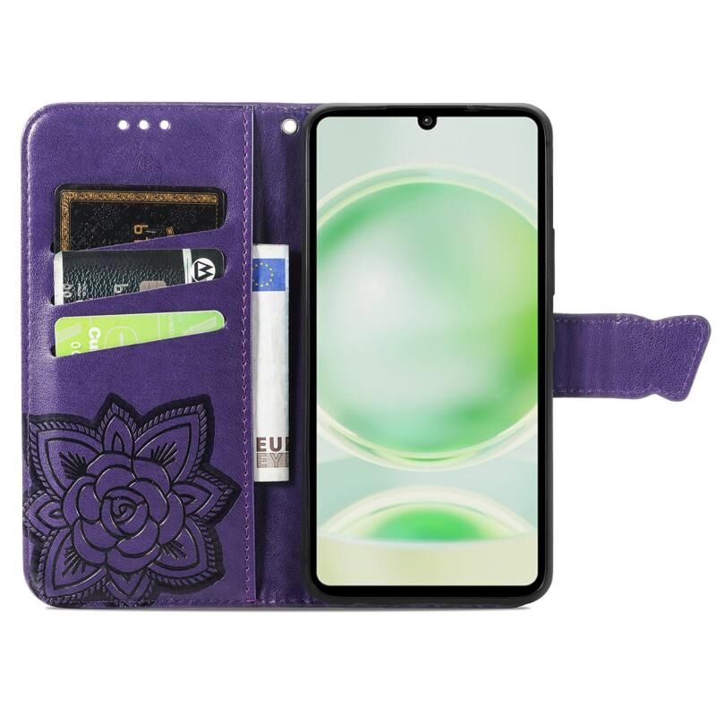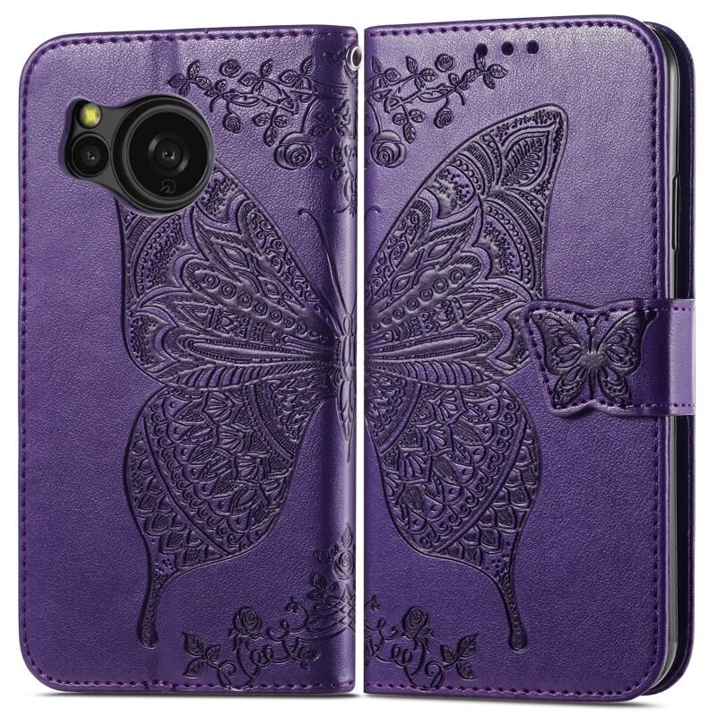 For Sharp Aquos Sense8 Butterfly Love Flower Embossed Leather Phone Case(Dark Purple)