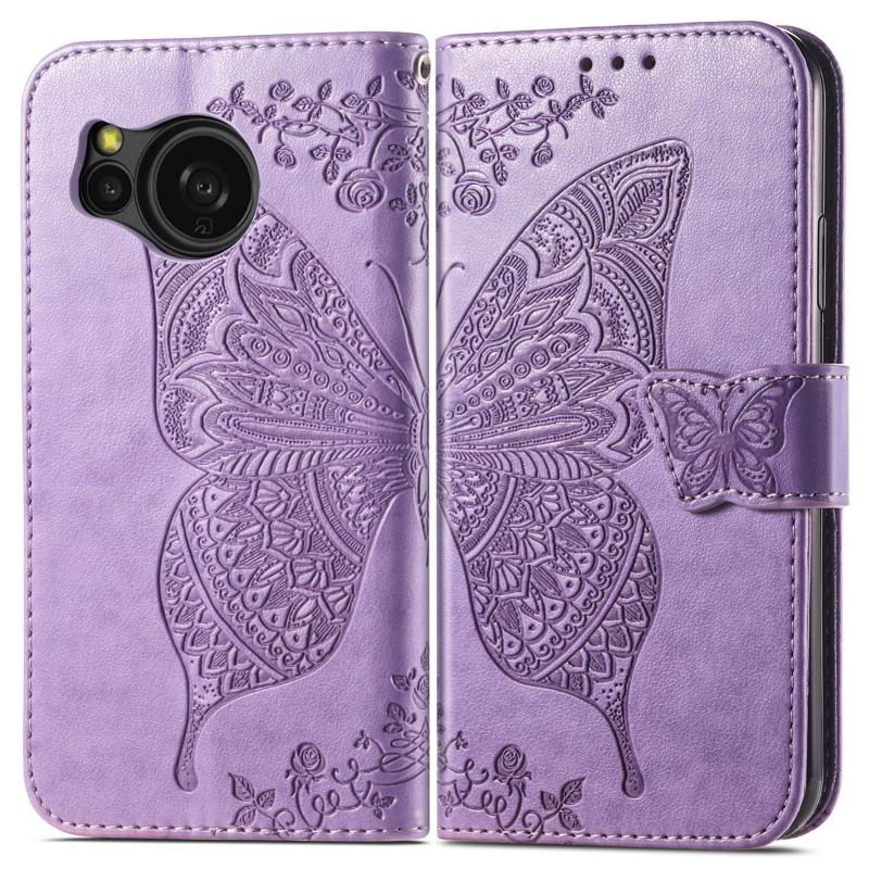 For Sharp Aquos Sense8 Butterfly Love Flower Embossed Leather Phone Case(purple)