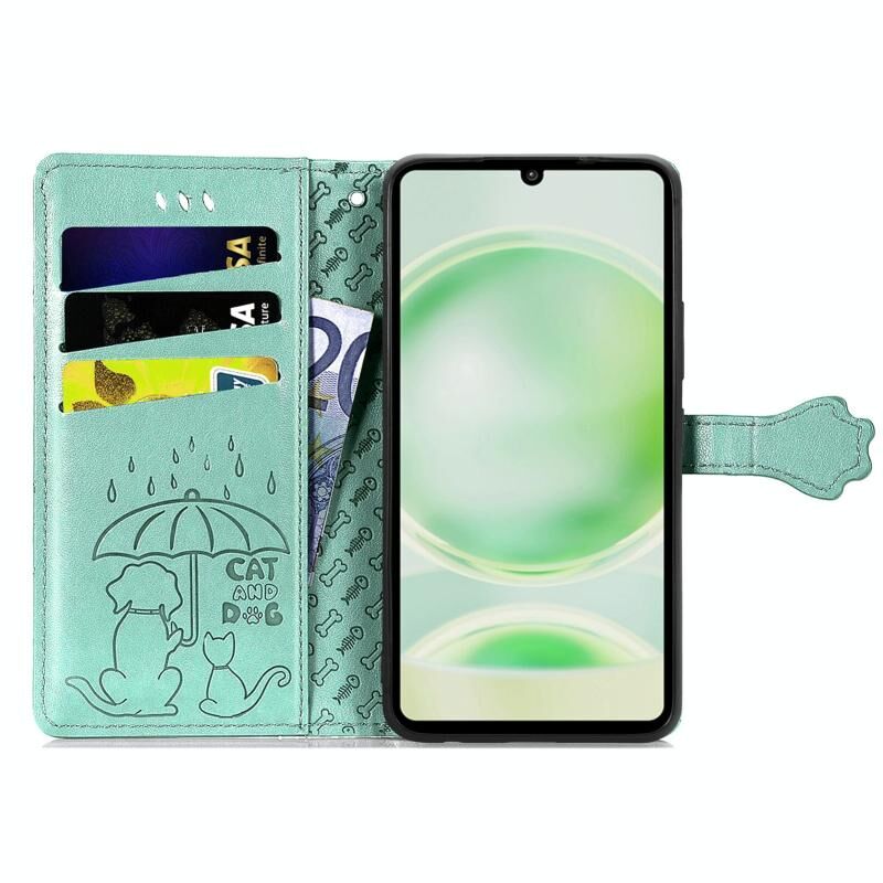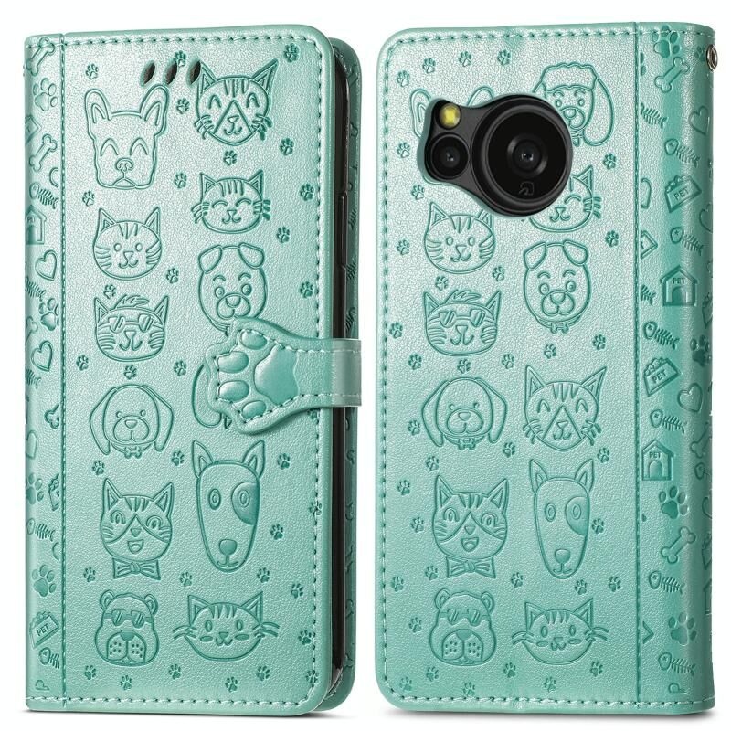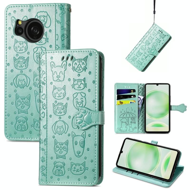 Για Sharp Aquos Sense8 Cat and Dog ανάγλυφη δερμάτινη θήκη τηλεφώνου (πράσινο)