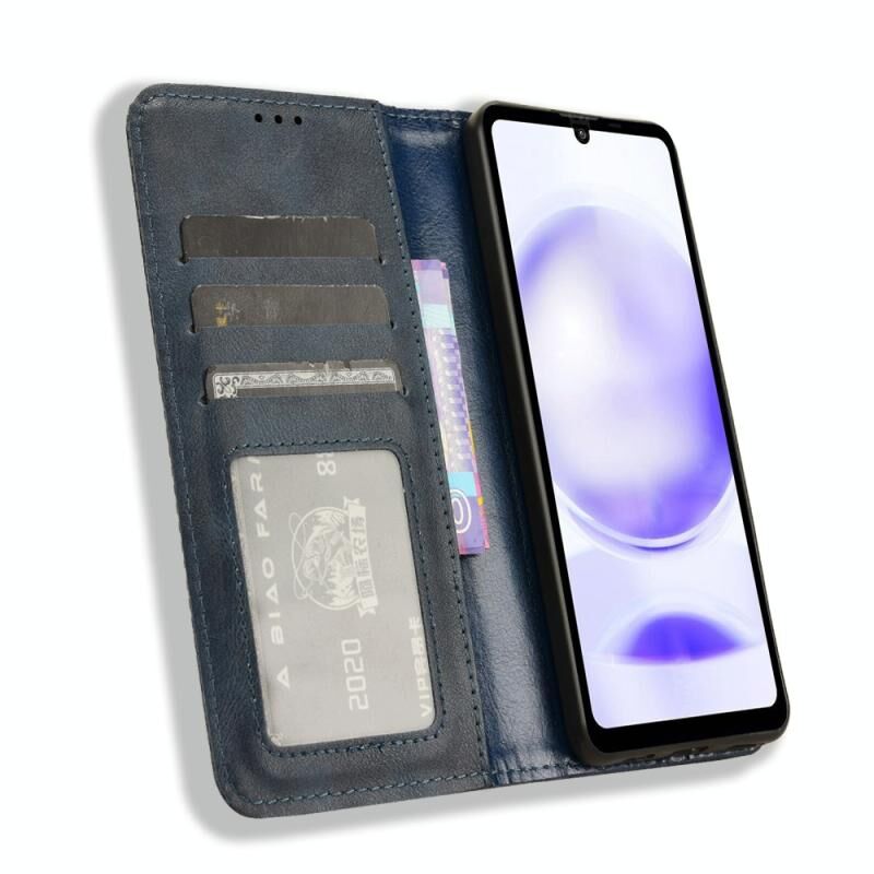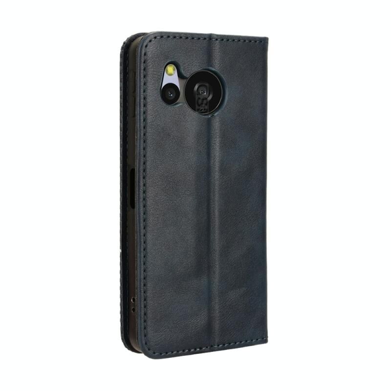 Για Sharp Aquos Sense8 μαγνητική πόρπη ρετρό υφή δερμάτινη θήκη τηλεφώνου (Μπλε)