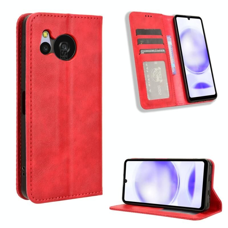 Για Sharp Aquos Sense8 μαγνητική πόρπη ρετρό υφή δερμάτινη θήκη τηλεφώνου (Κόκκινο)
