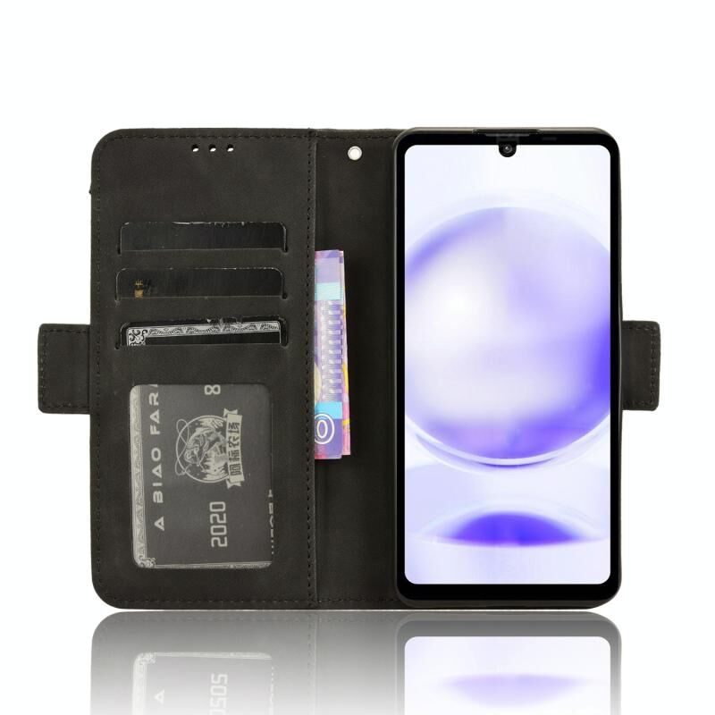 Για Sharp Aquos Sense8 δέρμα αίσθηση μοσχάρι υφή κάρτα υποδοχές δερμάτινη θήκη τηλεφώνου (Μαύρο)
