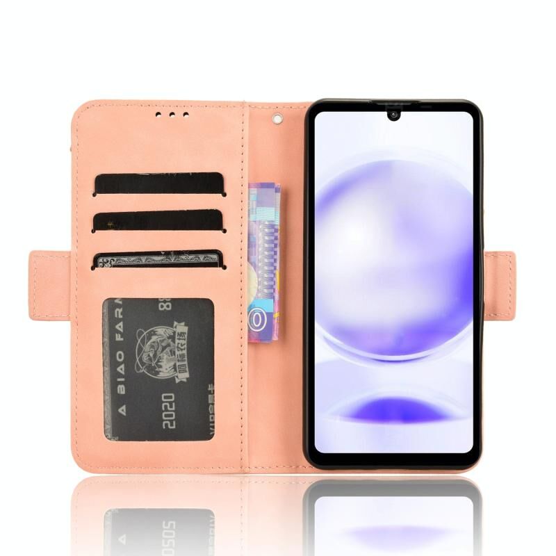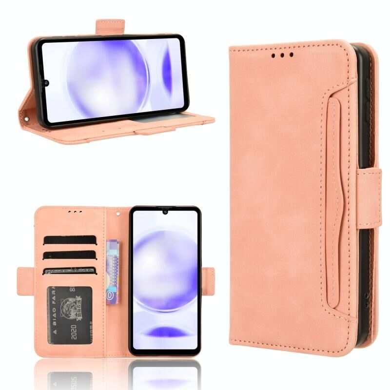 Για Sharp Aquos Sense8 δέρμα αίσθηση μοσχάρι υφή κάρτα υποδοχές δερμάτινη θήκη τηλεφώνου (ρόζ)