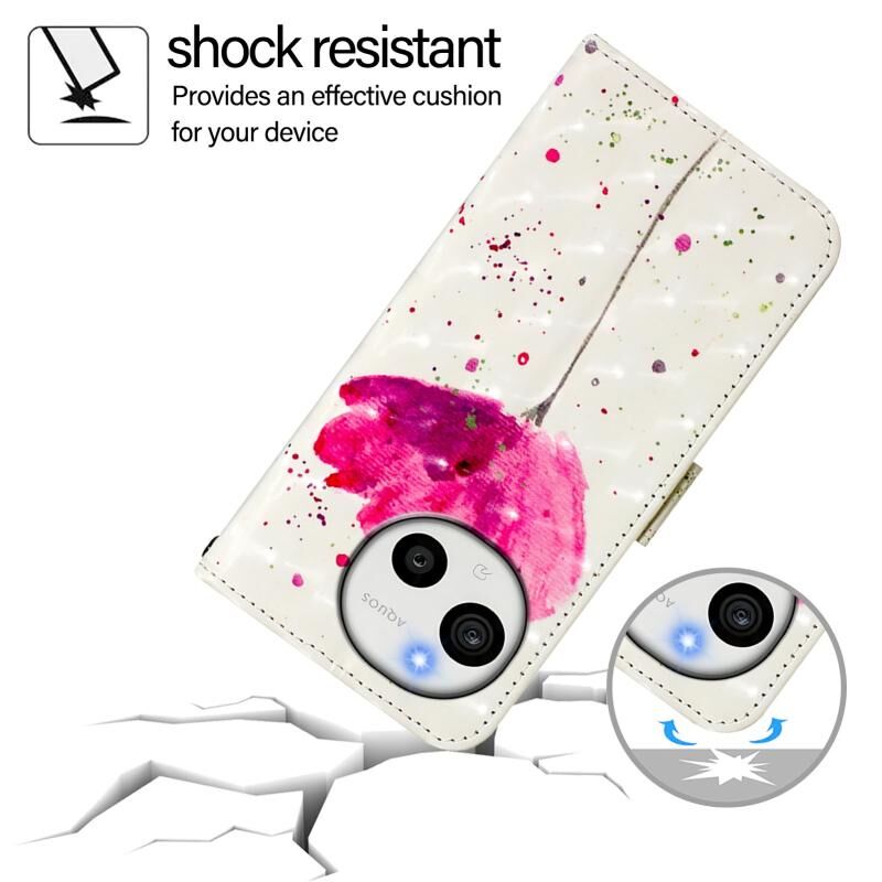 Θήκη τηλεφώνου από δέρμα με οριζόντια αναδίπλωση και τρισδιάστατη ζωγραφική για Sharp Aquos Sense9 (Λουλούδι)