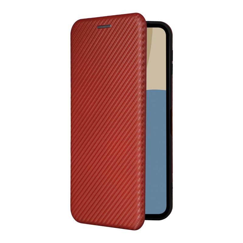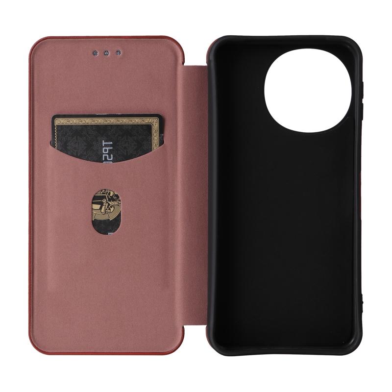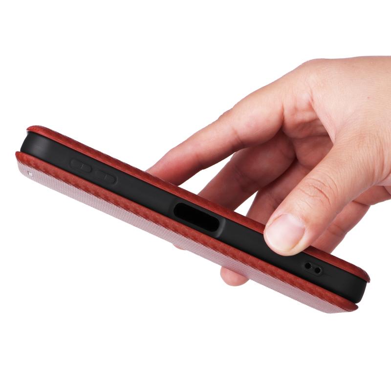 Θήκη τηλεφώνου από δέρμα με υφή ανθρακονημάτων για Sharp Aquos Sense9 (Καφέ)