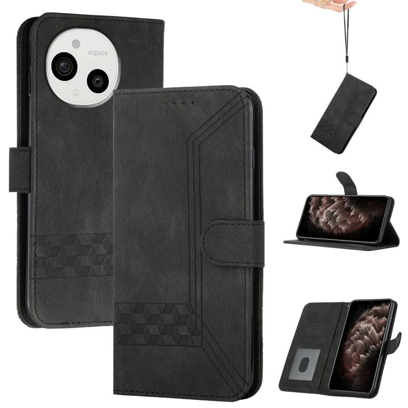 For Sharp Aquos Sense9 Cubic Skin Feel Flip Leather Phone Case(Black)