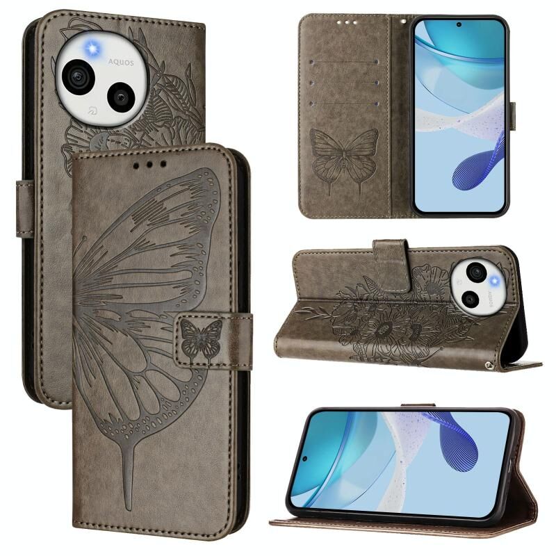 Θήκη τηλεφώνου από δέρμα με ανάγλυφο σχέδιο πεταλούδας για Sharp Aquos Sense9 (Μαύρο)