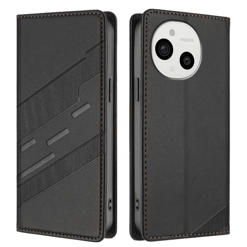 Θήκη τηλεφώνου από δέρμα retro, πολυλειτουργική με πορτοφόλι, ανάγλυφη για Sharp Aquos Sense9 (Μαύρο)