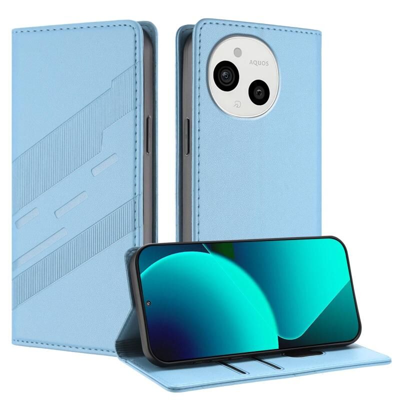 Θήκη τηλεφώνου από δέρμα retro, πολυλειτουργική με πορτοφόλι, ανάγλυφη για Sharp Aquos Sense9 (Ανοιχτό μπλε)