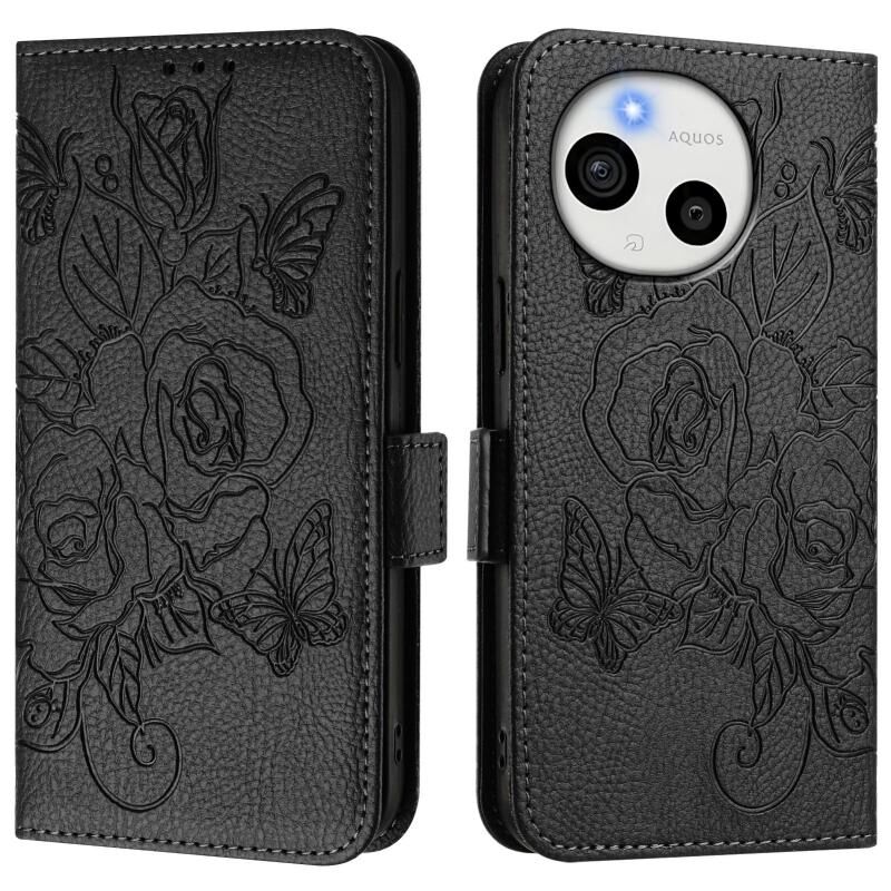 For Sharp Aquos Sense9 Embossed Rose RFID Anti-theft Leather Phone Case(Black)