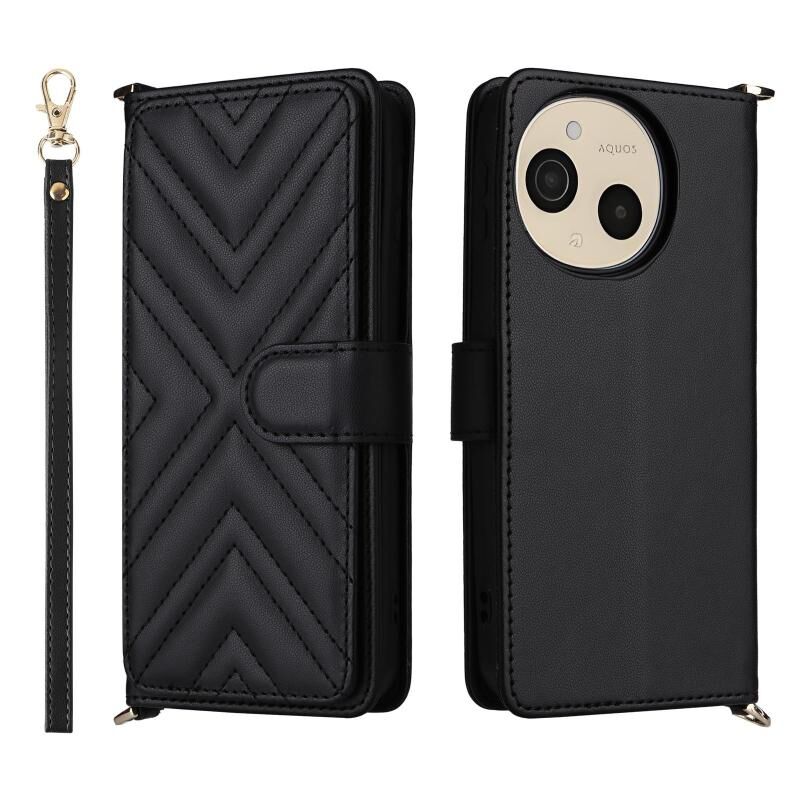 For Sharp Aquos Sense9 Multifunctional 6-Card Slots Leather Phone Case with Wrist Strap(Black)