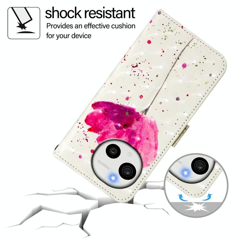 Θήκη τηλεφώνου από δέρμα με οριζόντια αναδίπλωση και τρισδιάστατη ζωγραφική για Sharp Aquos Sense9 Plus (Λουλούδι)