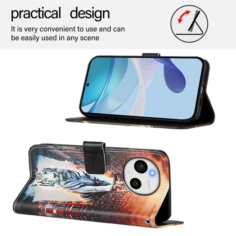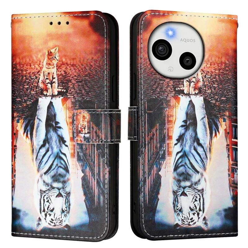 For Sharp Aquos Sense9 Plus Colored Drawing Pattern Plain Weave Leather Phone Case(Cats And Tigers)