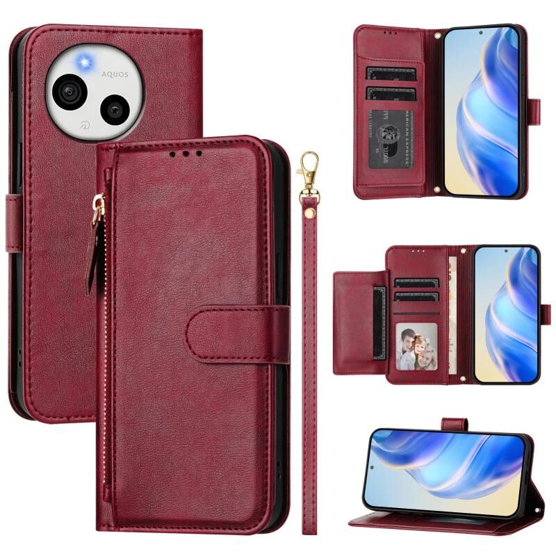 For Sharp Aquos Sense9 Plus Multi-Card Slots Zipper Wallet Leather Phone Case(Dark Red)