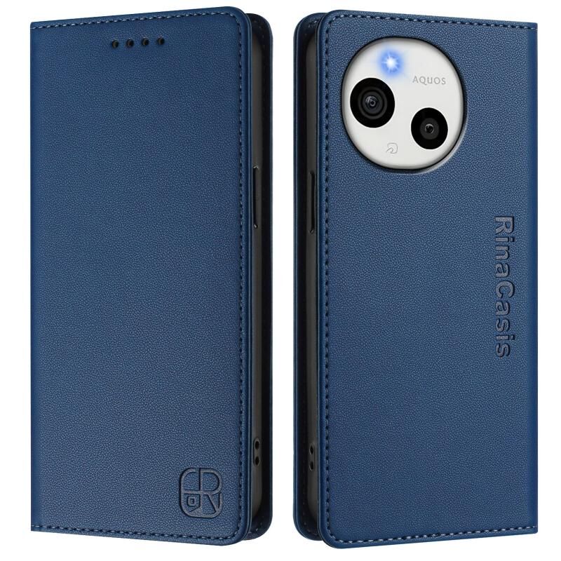 For Sharp Aquos Sense9 Plus RC01 Dual-Folded Magnetic Suction RFID Leather Phone Case(Dark Blue)