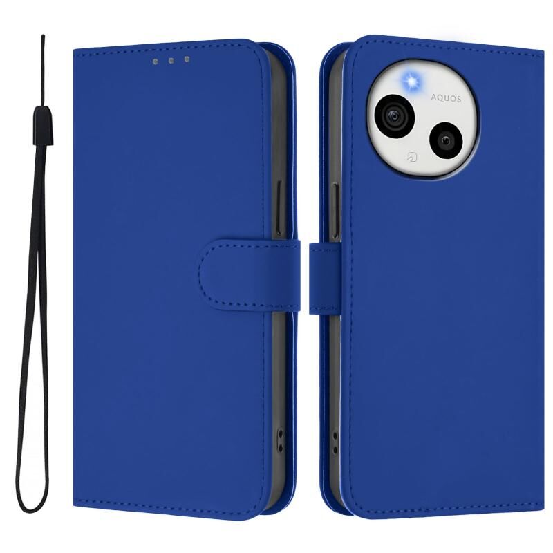 For Sharp Aquos Sense9 Plus Skin Feel Solid Color Leather Phone Case with Lanyard(Dark Blue)