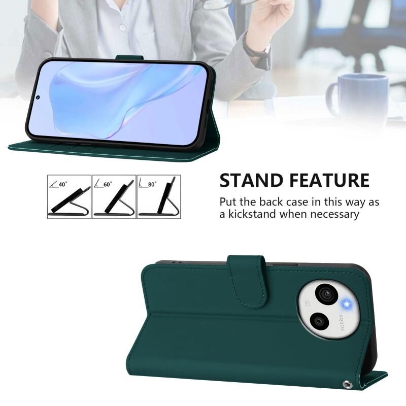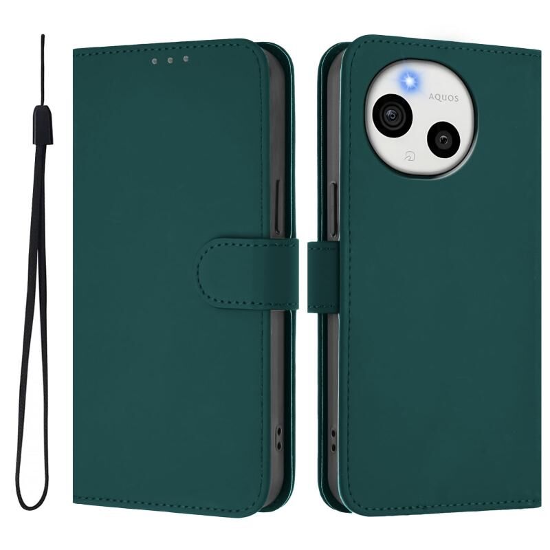 For Sharp Aquos Sense9 Plus Skin Feel Solid Color Leather Phone Case with Lanyard(Dark Green)