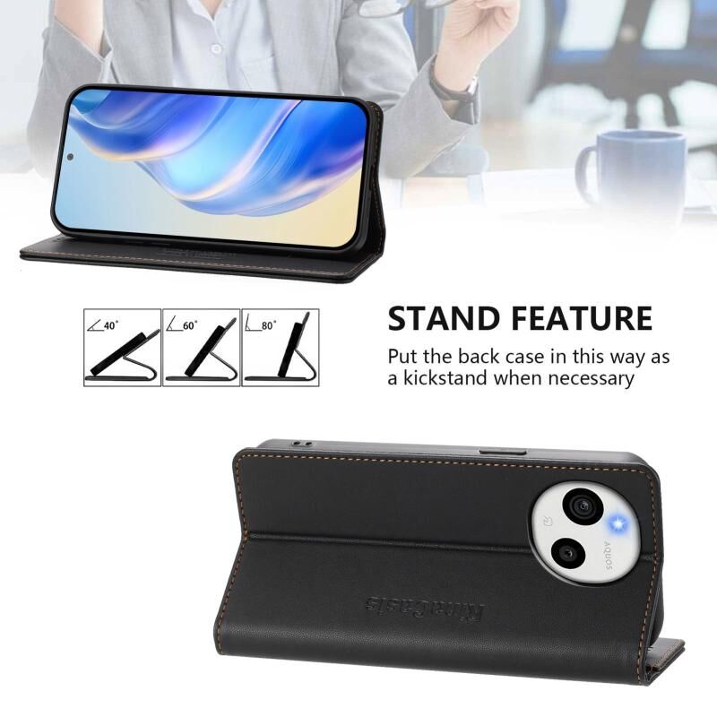 For Sharp Aquos Sense9 RC01 Dual-Folded Magnetic Suction RFID Leather Phone Case(Black)