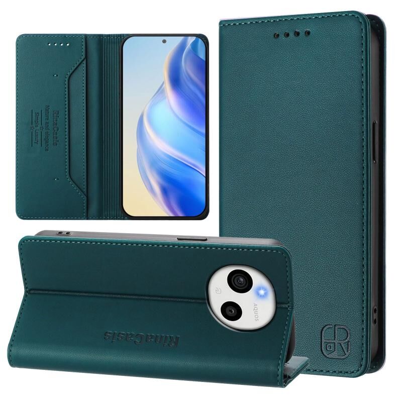 For Sharp Aquos Sense9 RC01 Dual-Folded Magnetic Suction RFID Leather Phone Case(Dark Green)