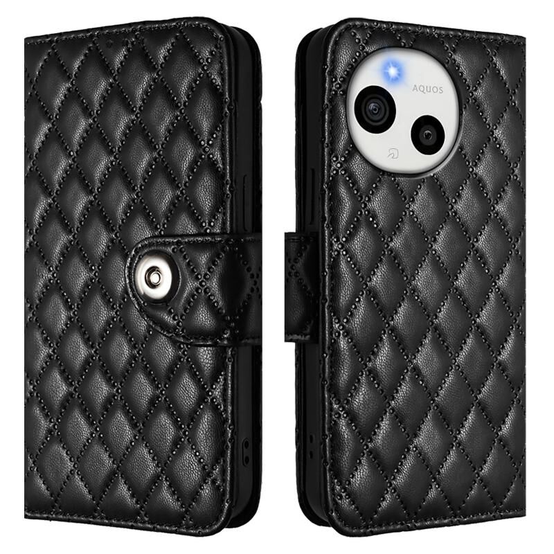 For Sharp Aquos Sense9 Rhombic Texture Flip Leather Phone Case with Lanyard(Black)