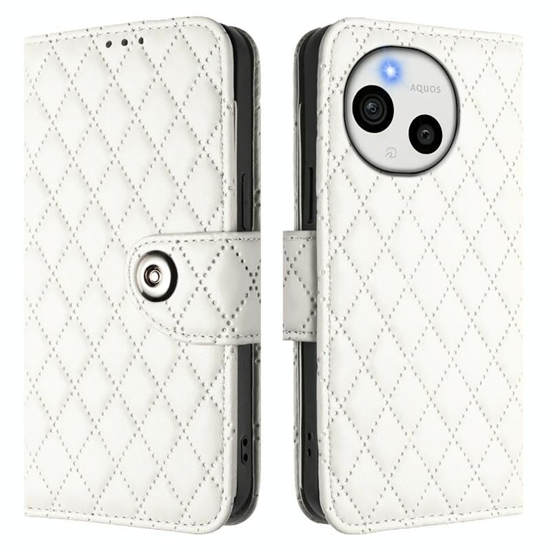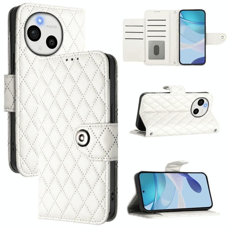 For Sharp Aquos Sense9 Rhombic Texture Flip Leather Phone Case with Lanyard(White)