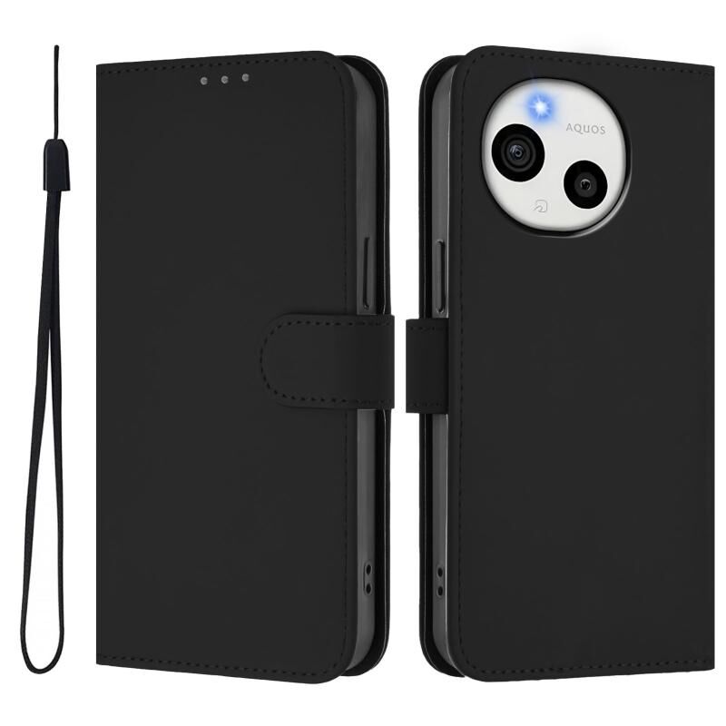 For Sharp Aquos Sense9 Skin Feel Solid Color Leather Phone Case with Lanyard(Black)