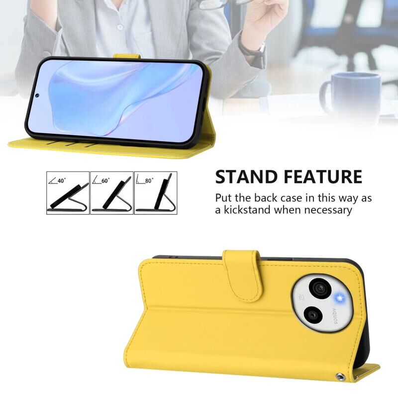 For Sharp Aquos Sense9 Skin Feel Solid Color Leather Phone Case with Lanyard(Lemon Yellow)