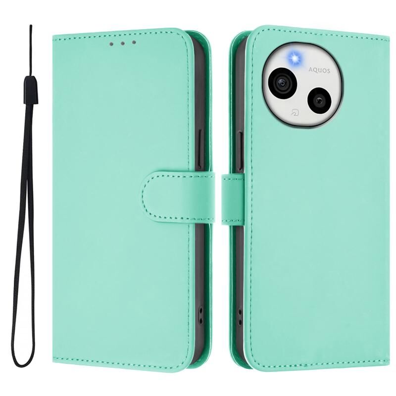 For Sharp Aquos Sense9 Skin Feel Solid Color Leather Phone Case with Lanyard(Mint Green)