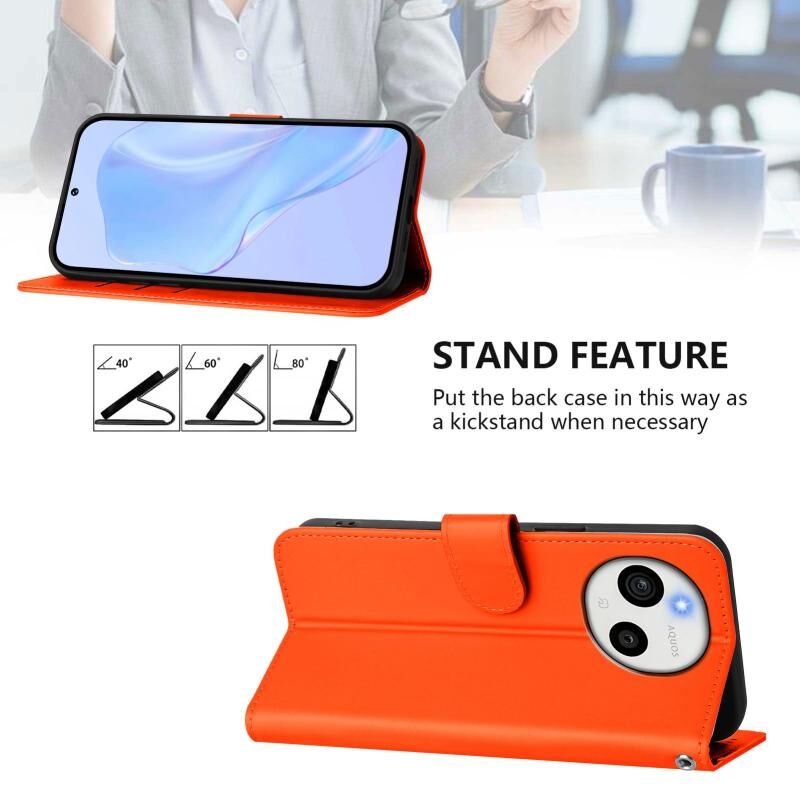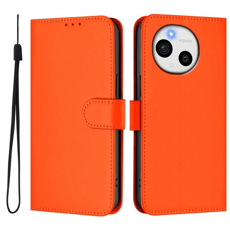 For Sharp Aquos Sense9 Skin Feel Solid Color Leather Phone Case with Lanyard(Orange)