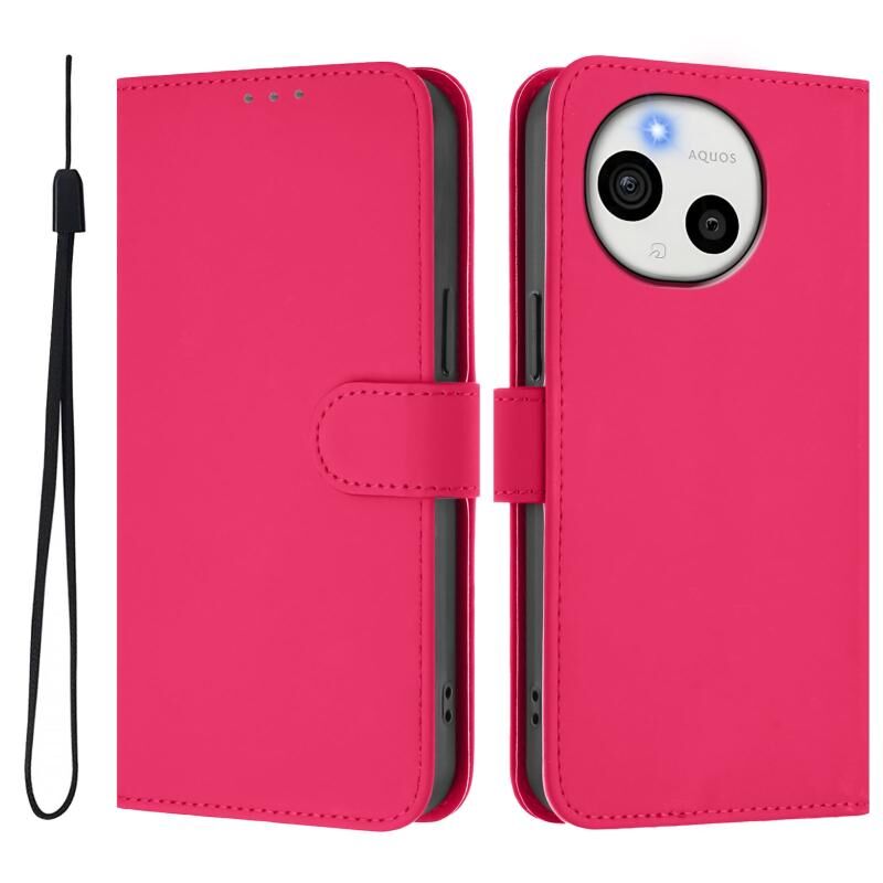 For Sharp Aquos Sense9 Skin Feel Solid Color Leather Phone Case with Lanyard(Rose Red)