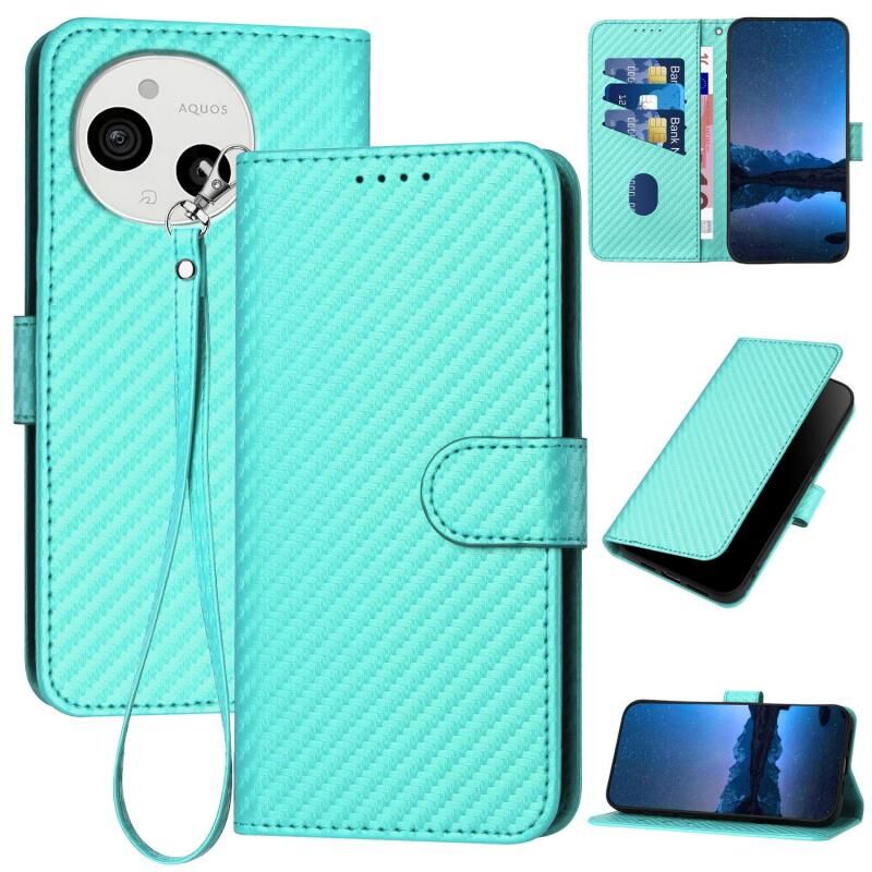 For Sharp Aquos Sense9 YX0070 Carbon Fiber Buckle Leather Phone Case with Lanyard(Light Blue)