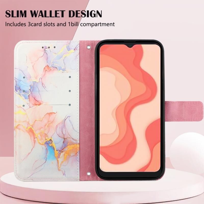 Θήκη τηλεφώνου από δέρμα με σχέδιο μάρμαρου για Sharp Aquos V6/V6 Plus PT003 (Ροζ Μωβ Χρυσό LS001)