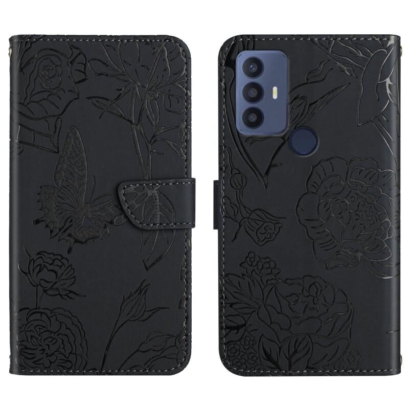 Θήκη τηλεφώνου από δέρμα με ανάγλυφο σχέδιο πεταλούδας και παιώνιας για Sharp Aquos V6 / V6 Plus (Κόκκινο)
