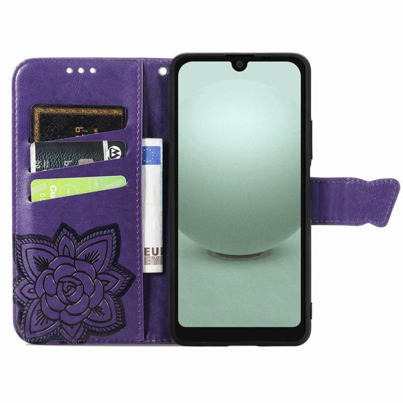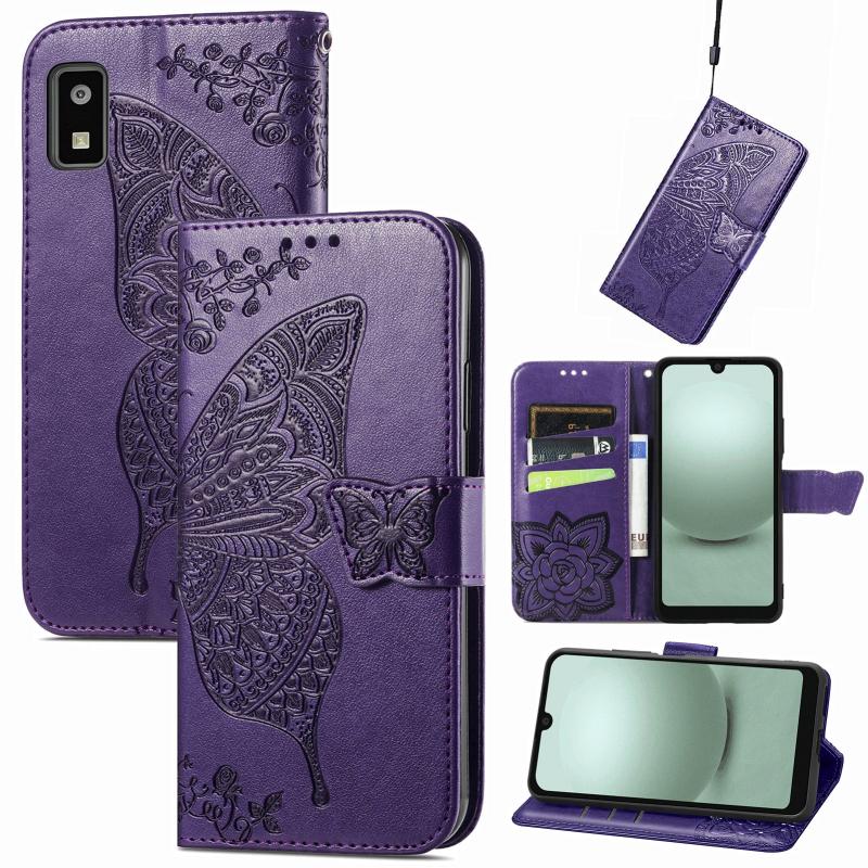For Sharp Aquos Wish 3 Butterfly Love Flower Embossed Leather Phone Case(Purple)