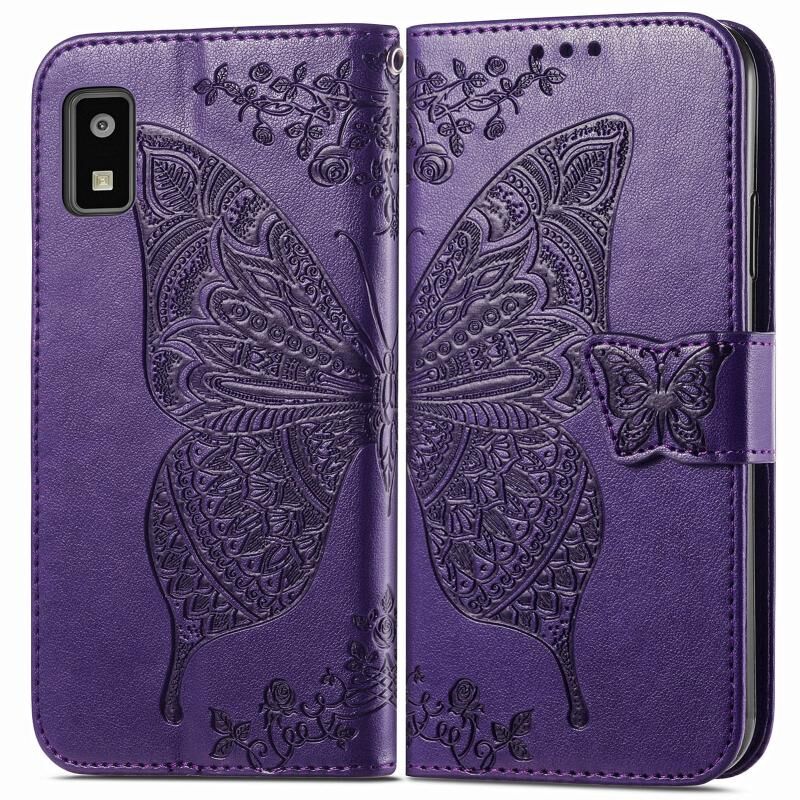 Θήκη τηλεφώνου από δέρμα με ανάγλυφο σχέδιο λουλουδιών Butterfly Love για Sharp Aquos Wish 3 (Χρυσό Ροζ)
