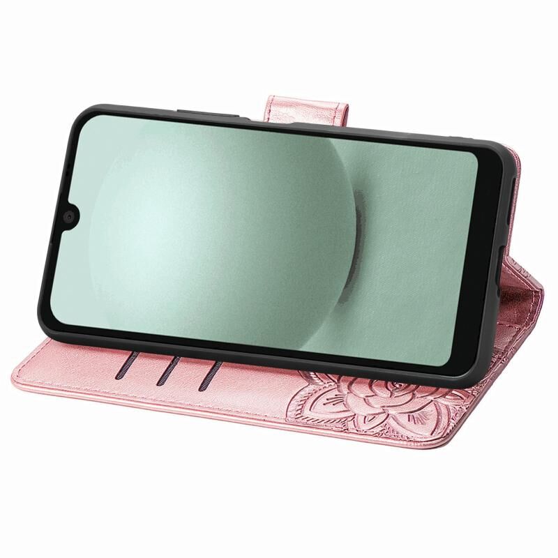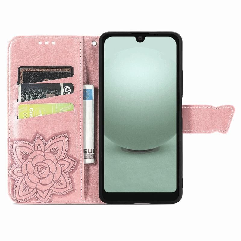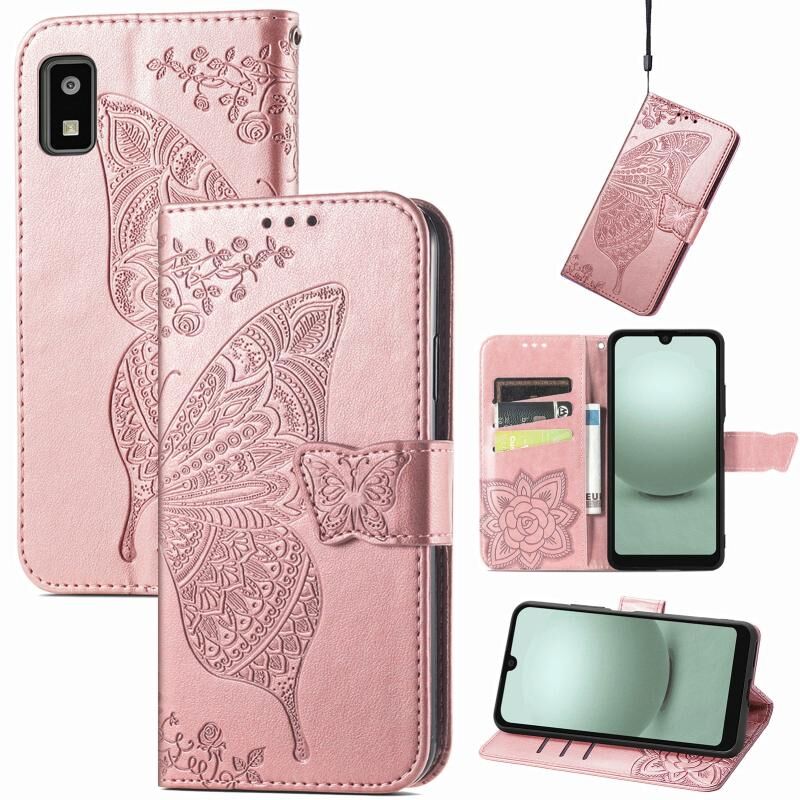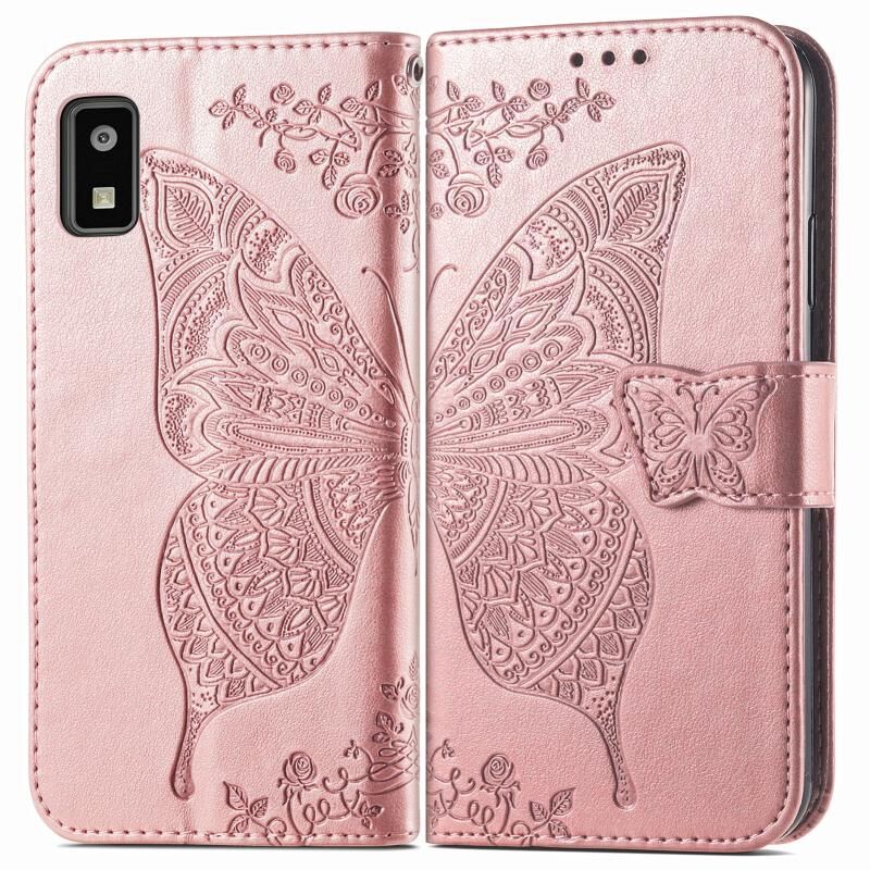 Θήκη τηλεφώνου από δέρμα με ανάγλυφο σχέδιο λουλουδιών Butterfly Love για Sharp Aquos Wish 3 (Χρυσό Ροζ)