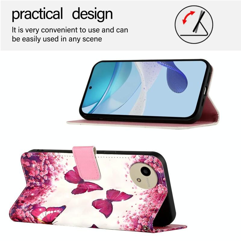 Θήκη τηλεφώνου από δέρμα με οριζόντια αναδίπλωση και τρισδιάστατη ζωγραφική για Sharp Aquos wish4 (Ροζ Πεταλούδα)