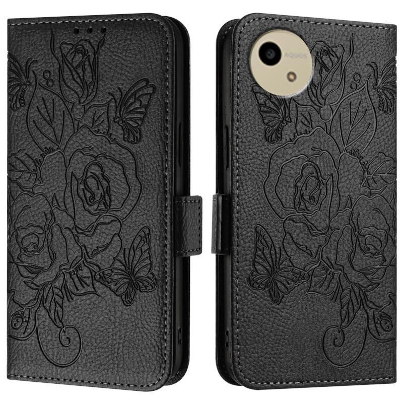 For Sharp Aquos Wish4 Embossed Rose RFID Anti-theft Leather Phone Case(Black)