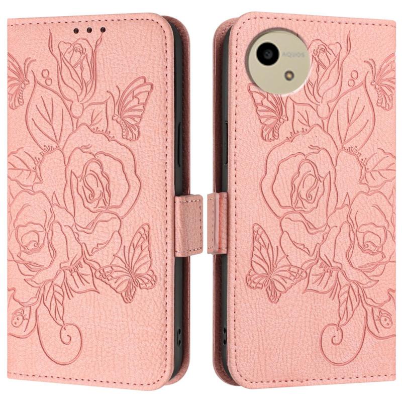 For Sharp Aquos Wish4 Embossed Rose RFID Anti-theft Leather Phone Case(Pink)