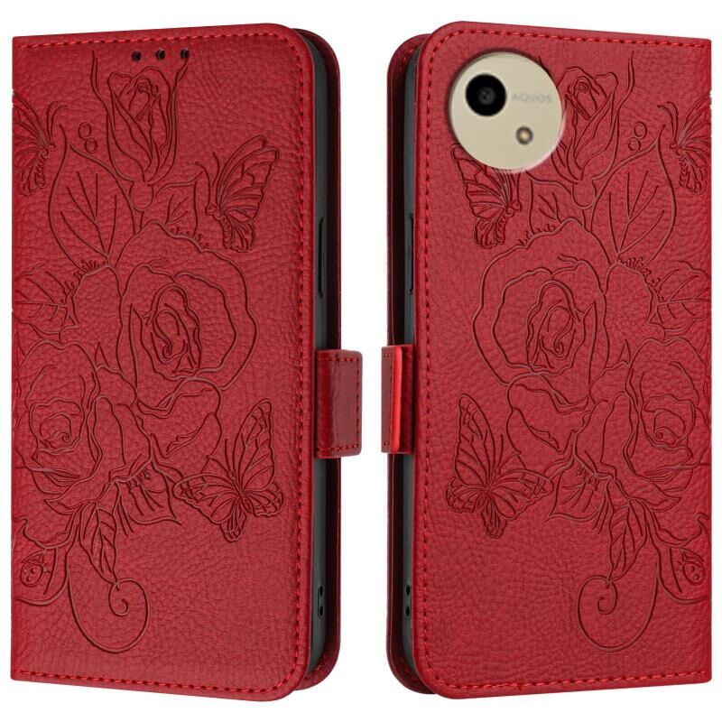 For Sharp Aquos Wish4 Embossed Rose RFID Anti-theft Leather Phone Case(Red)