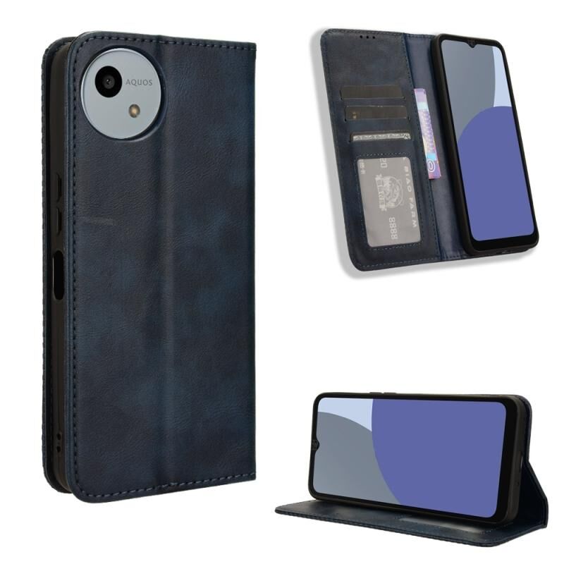Για Sharp Aquos wish4 Μαγνητική πόρπη ρετρό υφή δερμάτινη θήκη τηλεφώνου (Μπλε)
