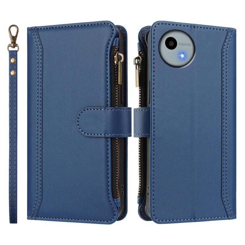 For Sharp Aquos wish4 Magnetic Closure 9 Card Slots Zipper Leather Case with Hand Strap(Dark Blue)